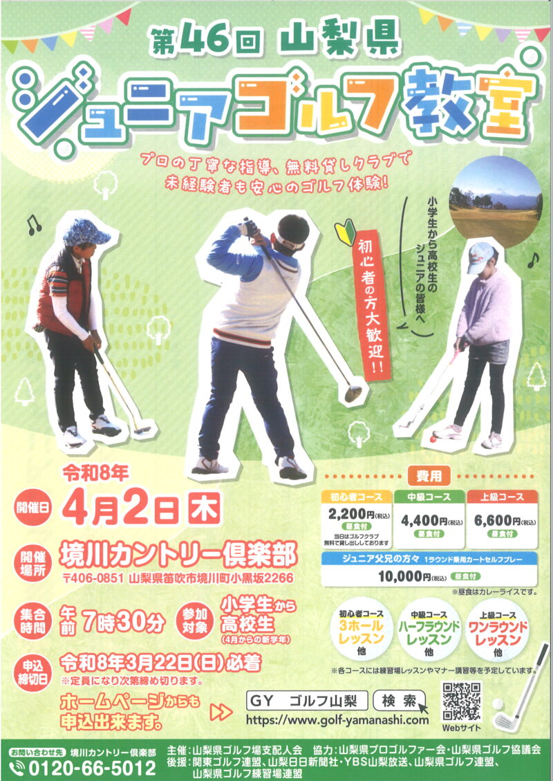 さて、山梨県ゴルフ場支配人会が主催する「第46回ジュニアゴルフ教室」が